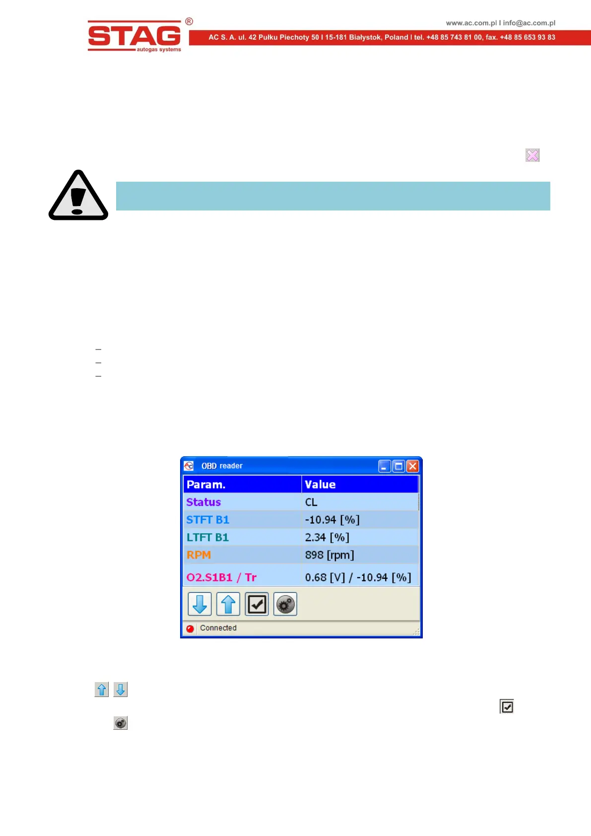 The reader is initiated by selecting the “OBD reader” option on the gas settings tab. If the