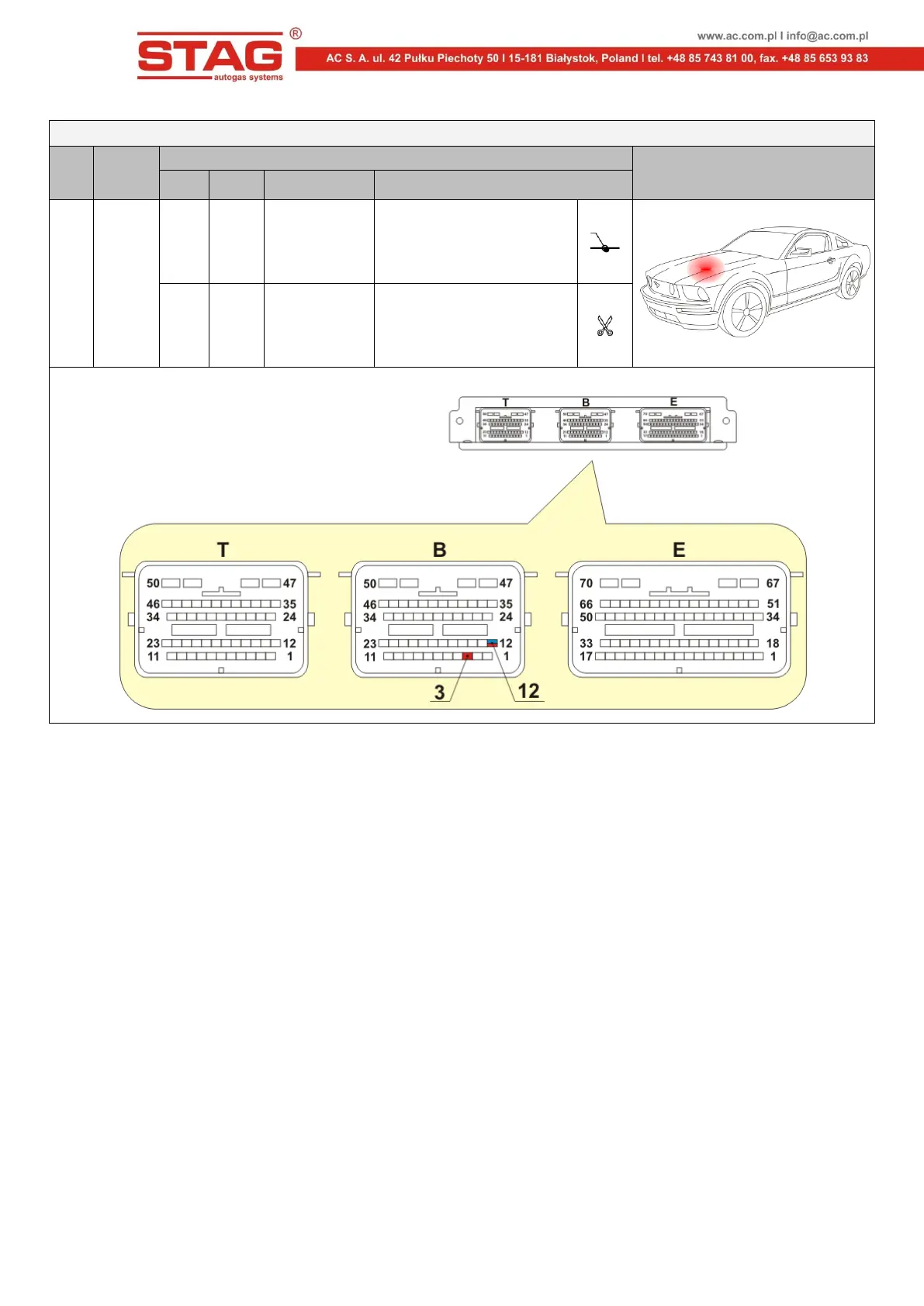 View of the pins in the connector of the petrol controller.