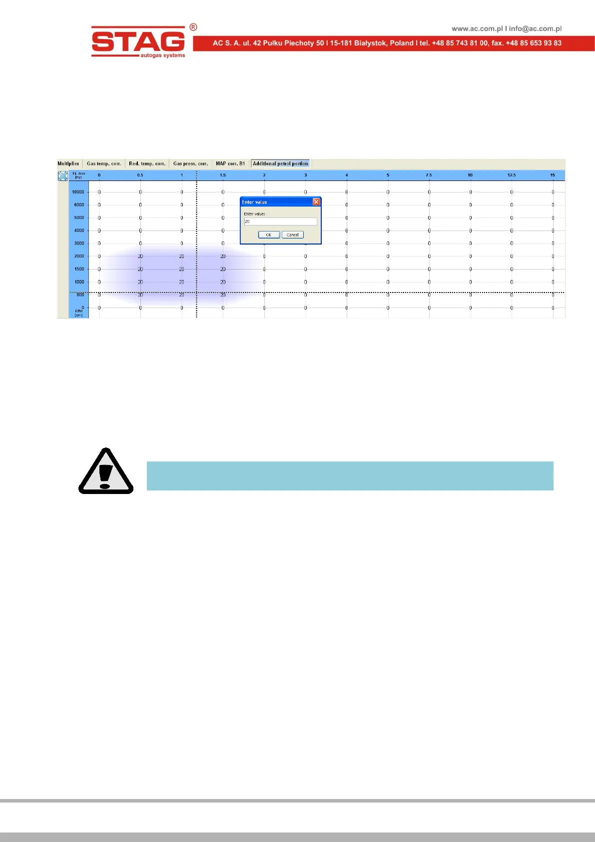 on the petrol portion map is identical as on the RPM correction map, i.e. cursor keys (← ,↑,→,