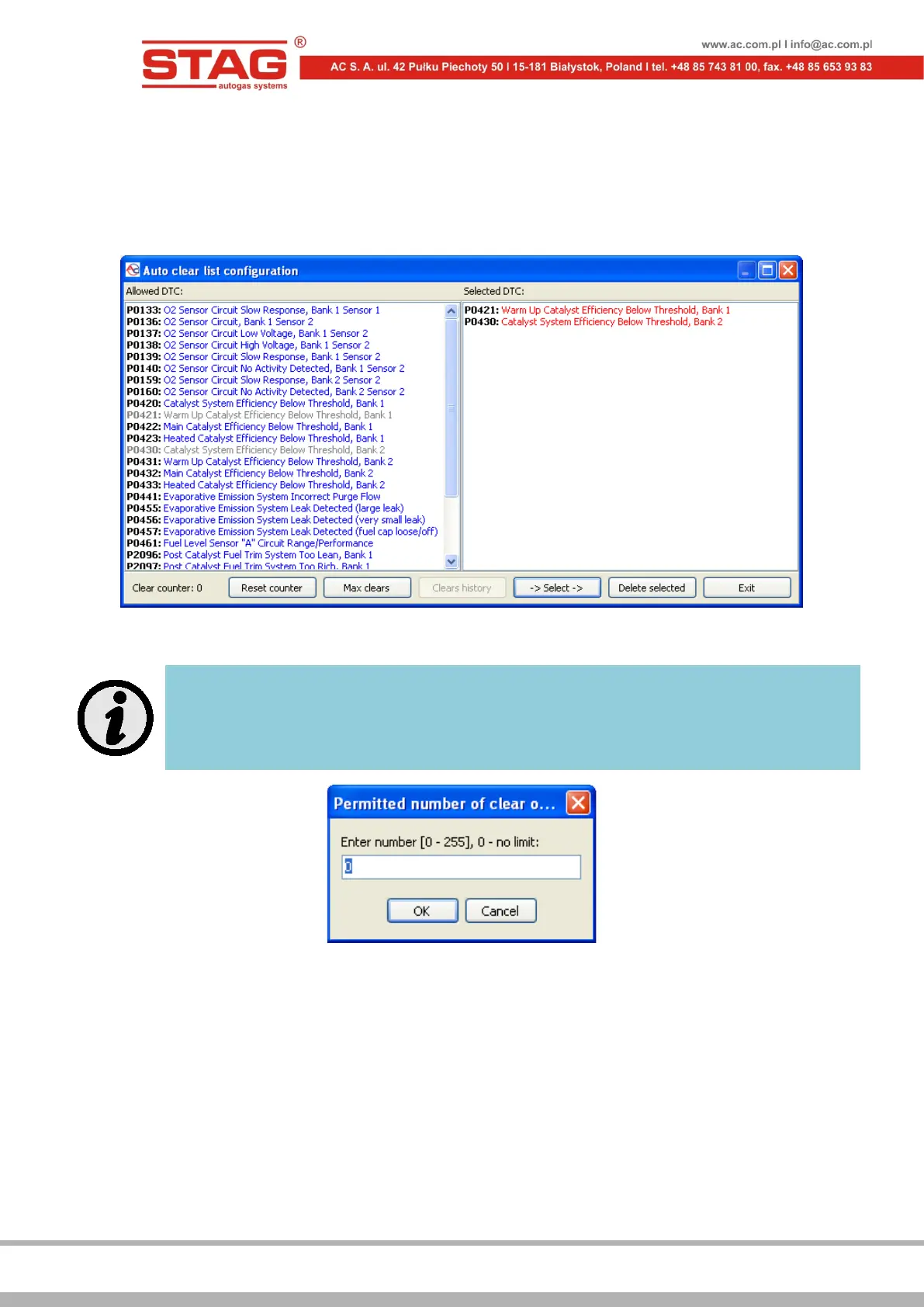 Figure 2.1.22 The view of the OBD error clearing configuration window.