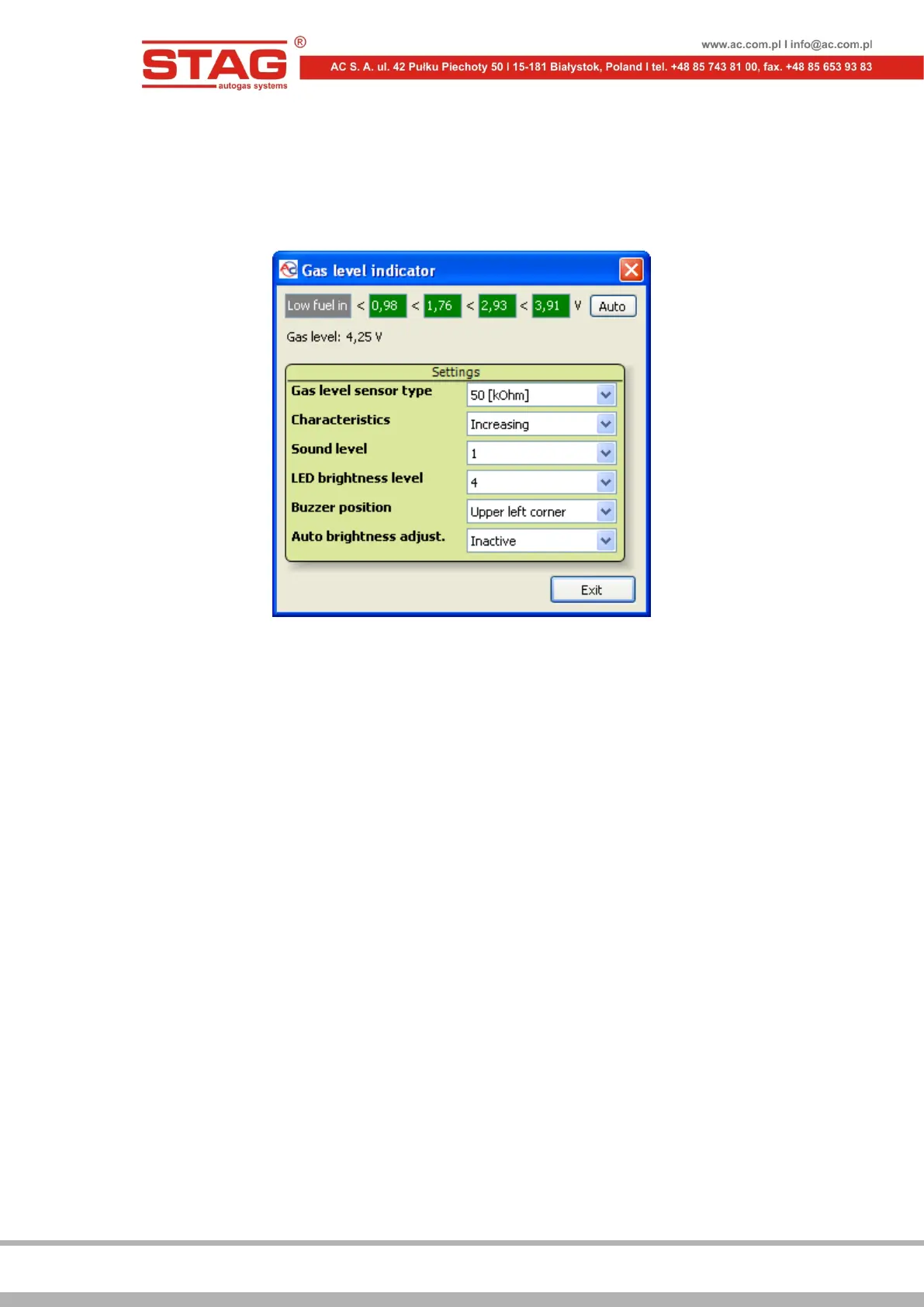Figure 2.1.32 “Gas level indicator” window