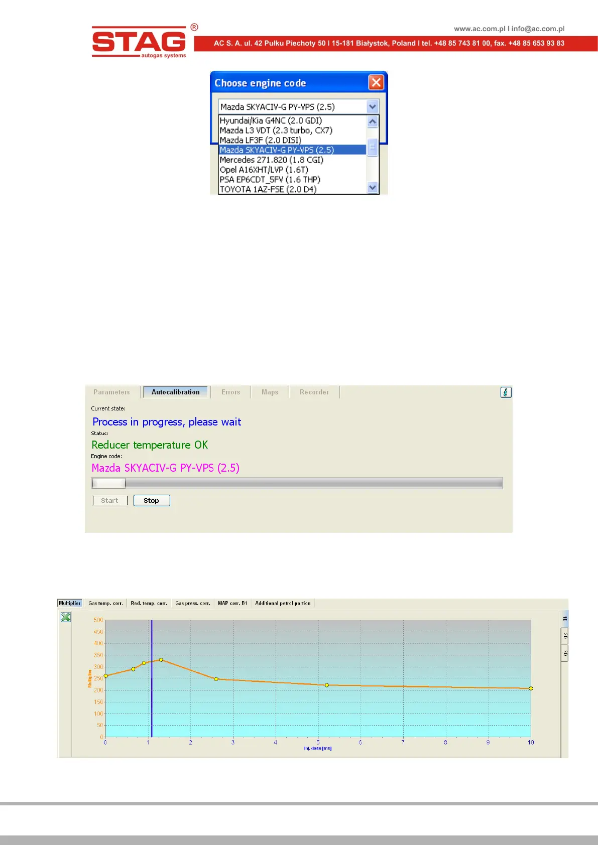 calibration process, the user can observe petrol injection times and switching on of subsequent