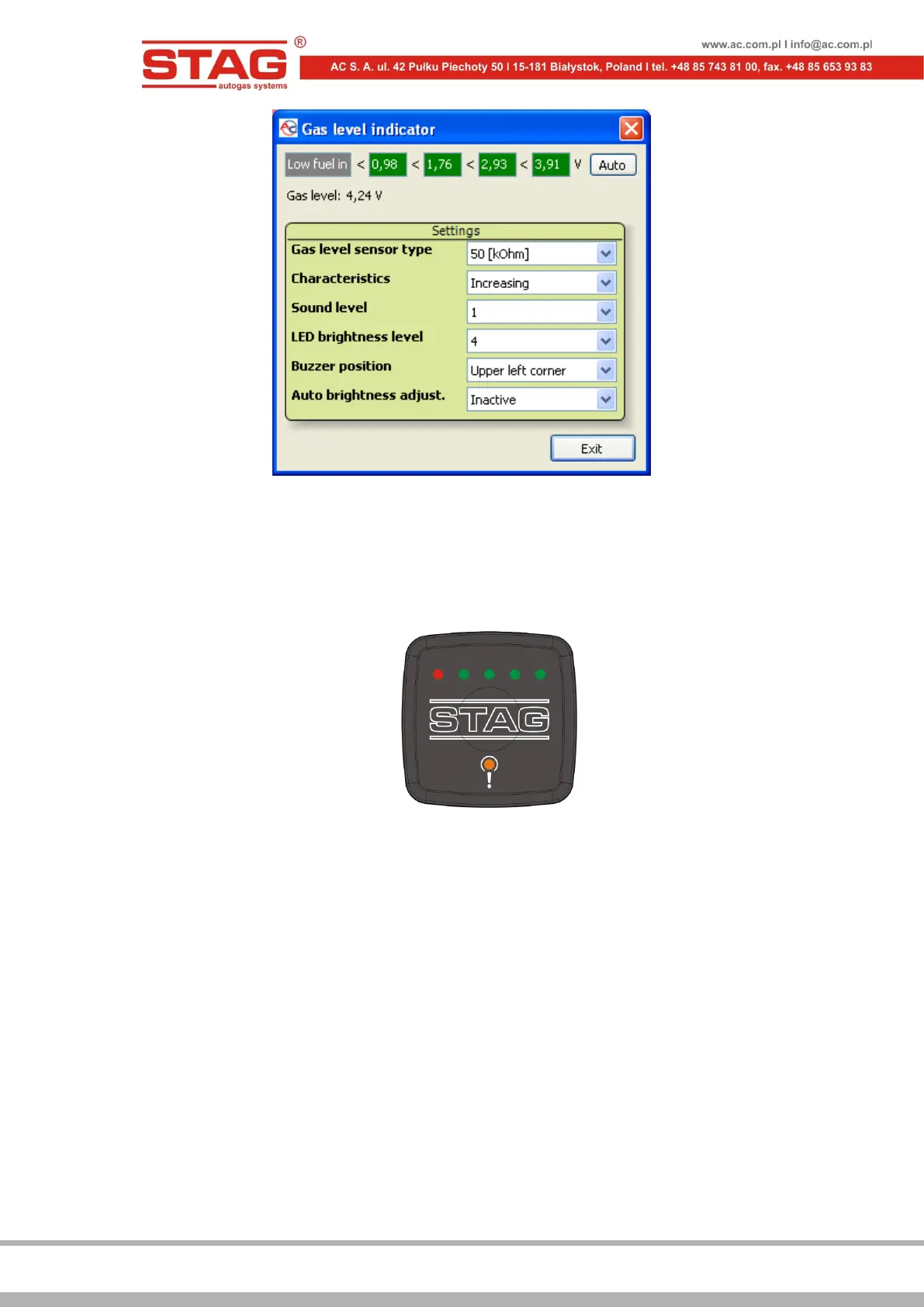 LED line – shows current LPG level in the tank. Four green LEDs indicate a full tank; a red