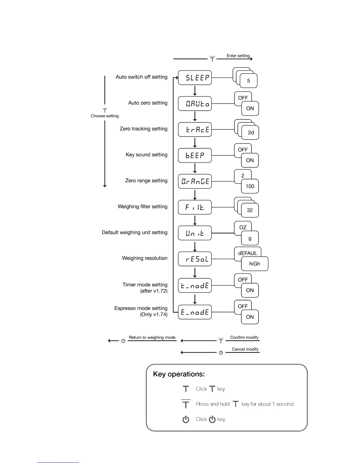 acaia Coffee Scale - Configuration Settings Overview; Setup Mode Settings