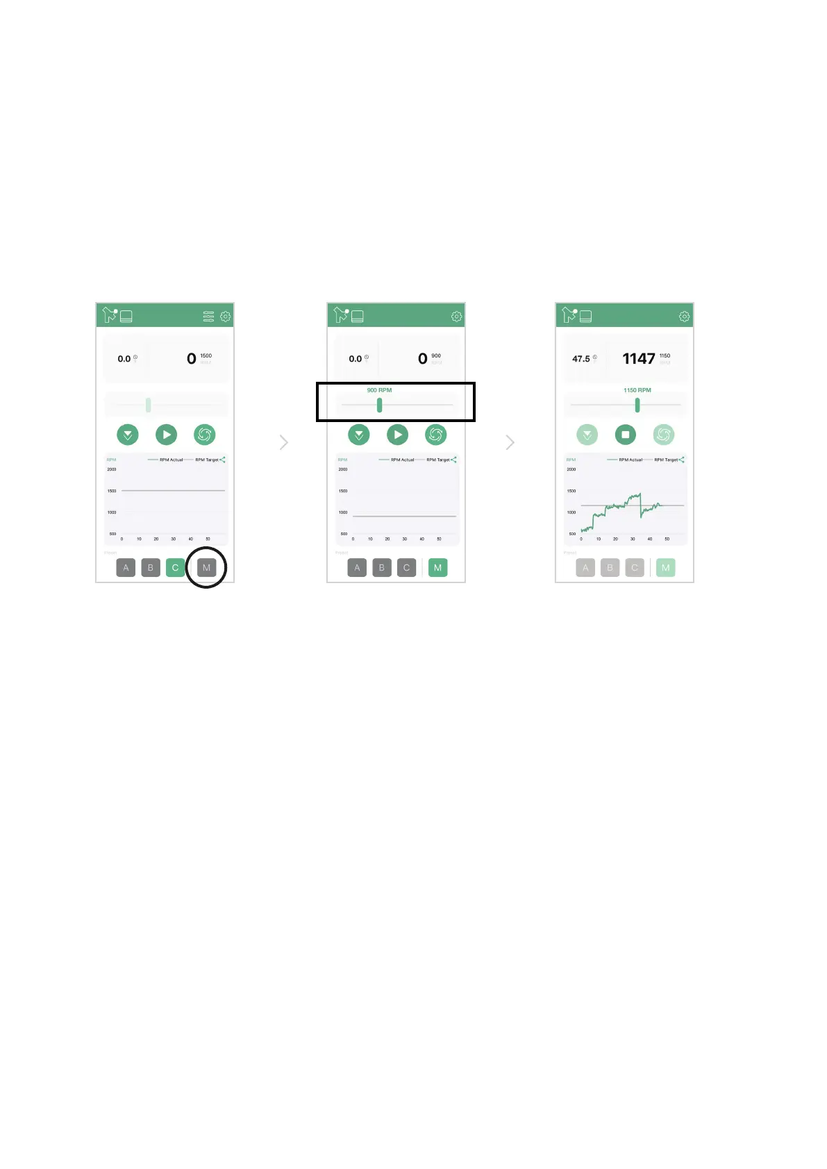 RPM slider in the Orbit App. You can see the real time RPM graphed in the chart on the