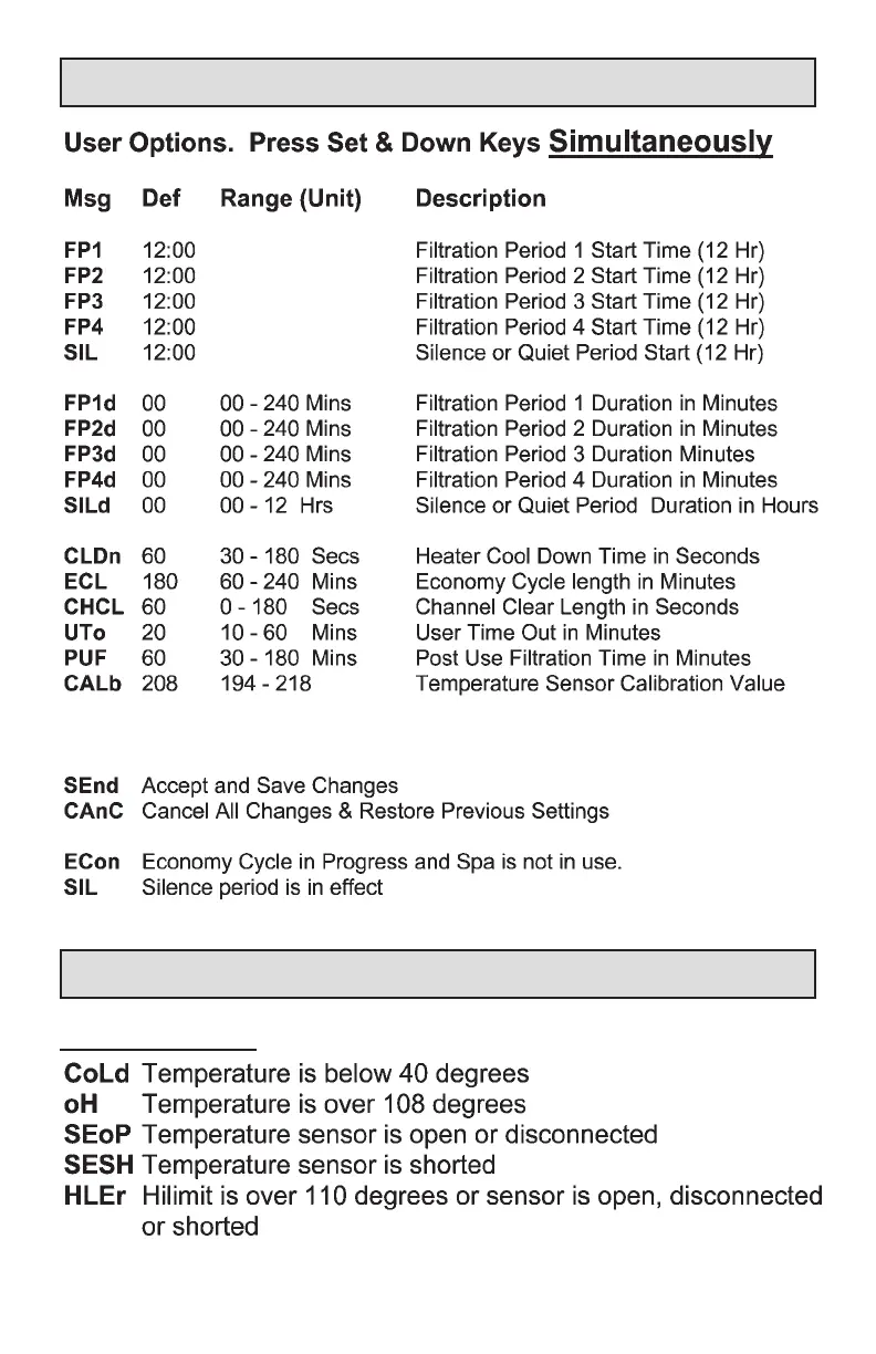ACC SmarTouch Digital - System Configuration and Error Codes; User Settable System Options; Protected System Settings; Self-Diagnostic Error Messages