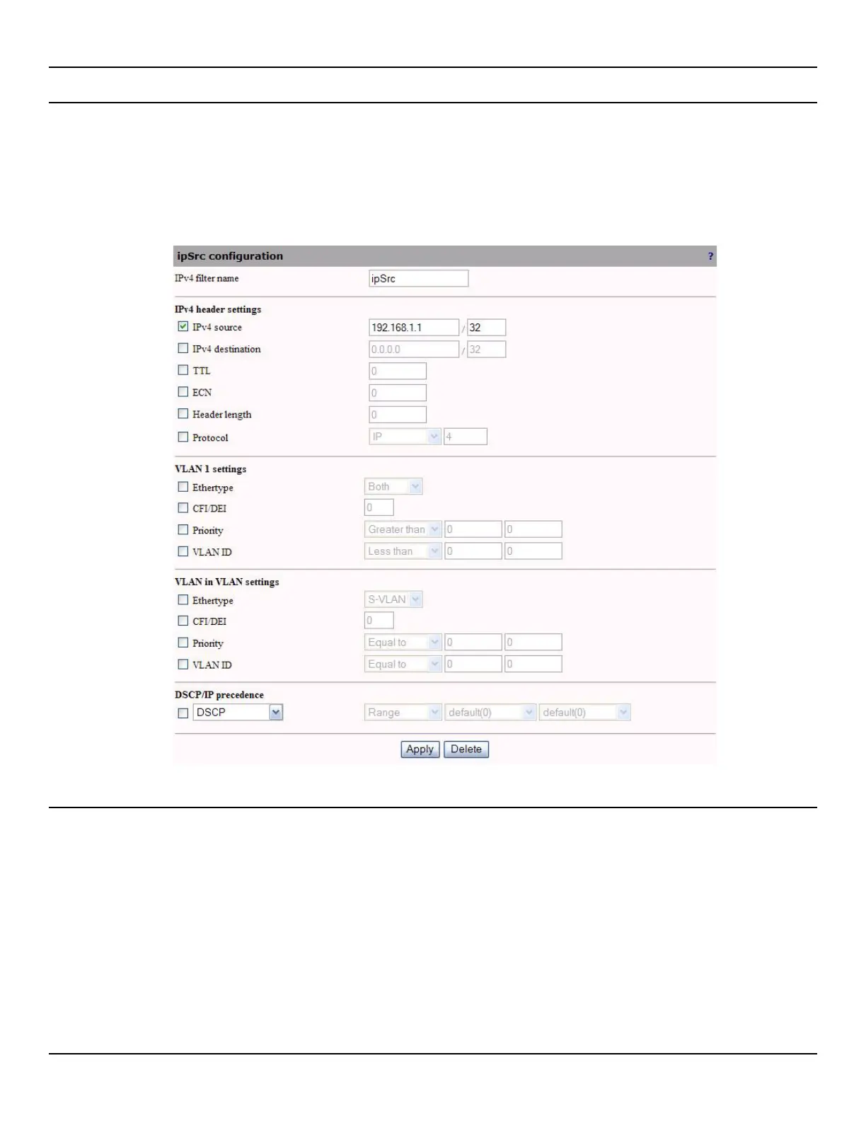 IPv4 filter parameters