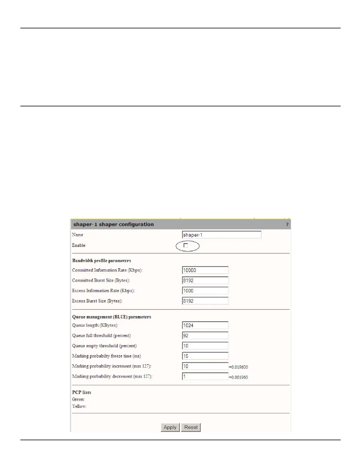 Enter the desired values for the shaper then enable the shaper and Apply.