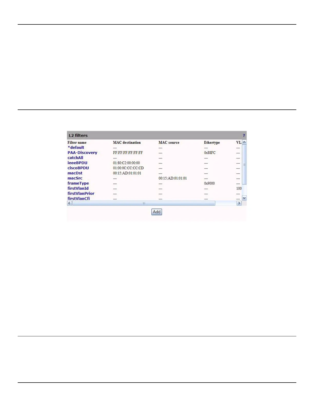 1. Open the Traffic > L2 Filters page.