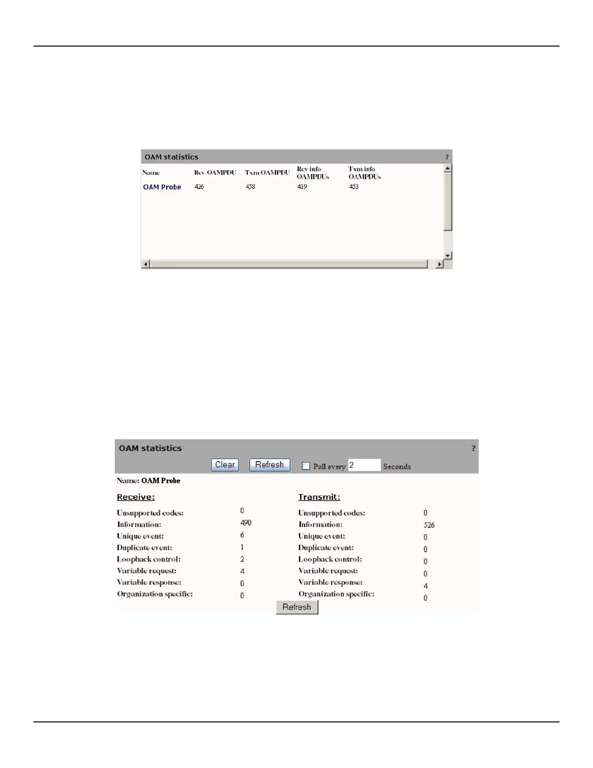 • Txm OAMPDU: Number of OAMPDUs transmitted by this instance. Include all types: info, var request, var