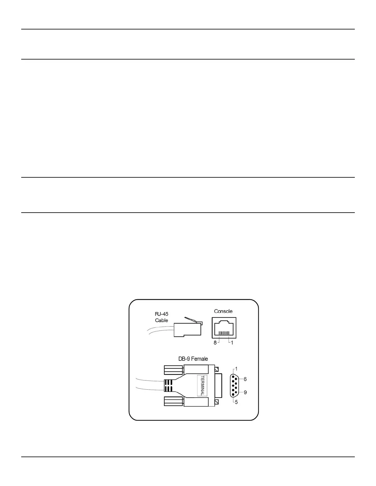 • Console: RJ-45 serial connection for access to the console interface. Pin-outs for both ends of the console cable