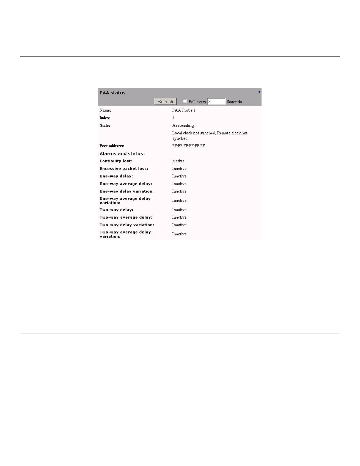 This page provides the status details for a specific PAA probe.