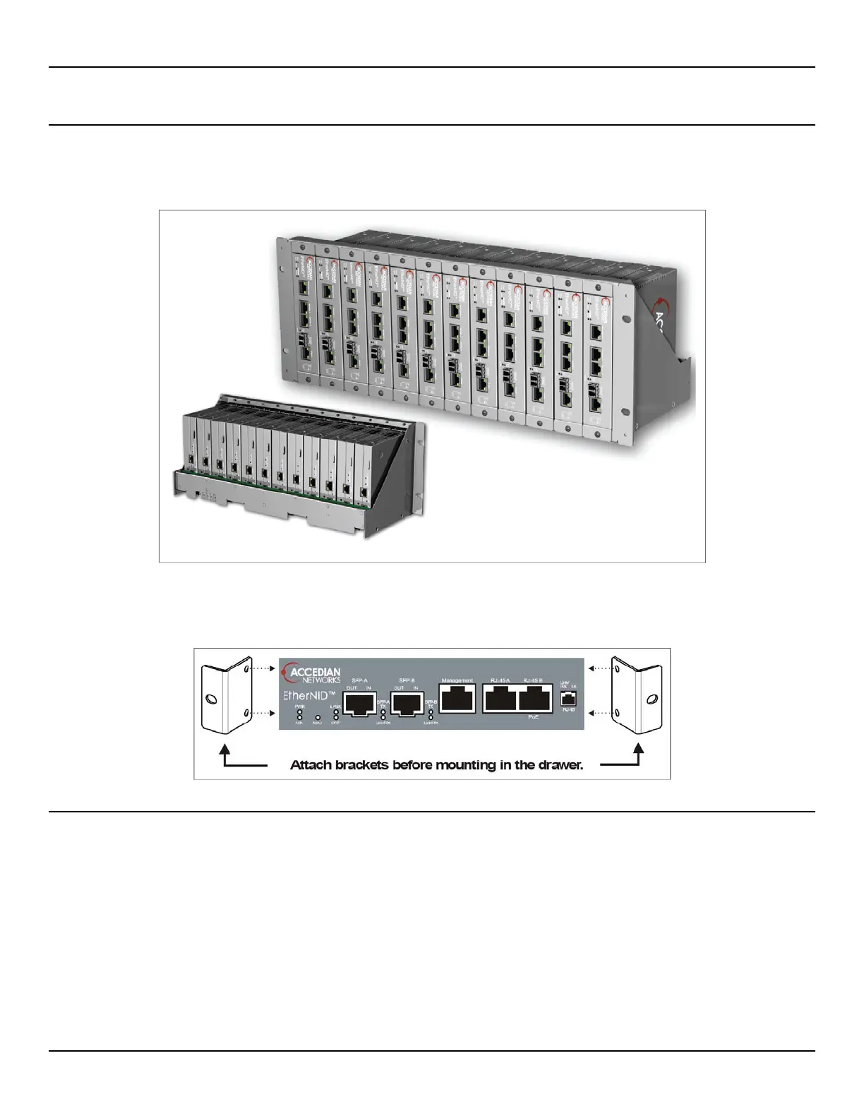 To mount an EtherNID in the EtherSHELF, L-shaped brackets must be attached to the left and right side of the unit.