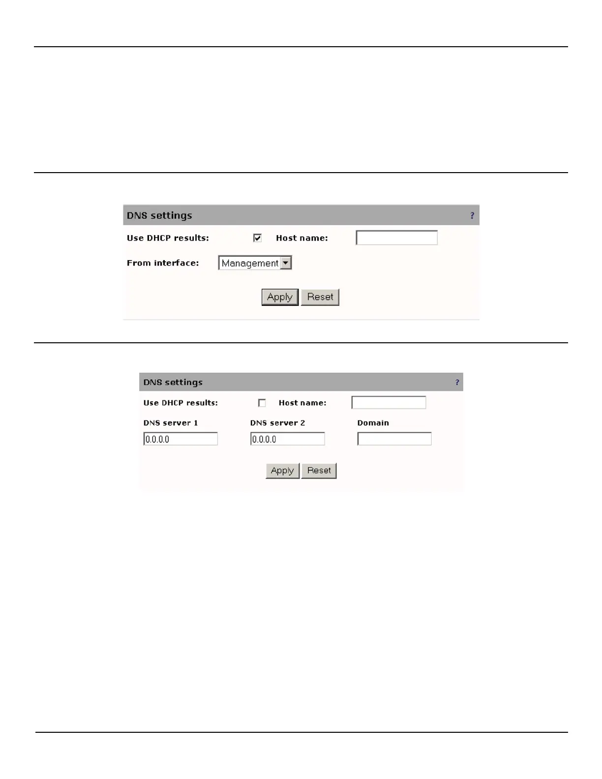 To define DNS options, open the System > DNS page. You can either choose to use the DNS settings obtained via DHCP