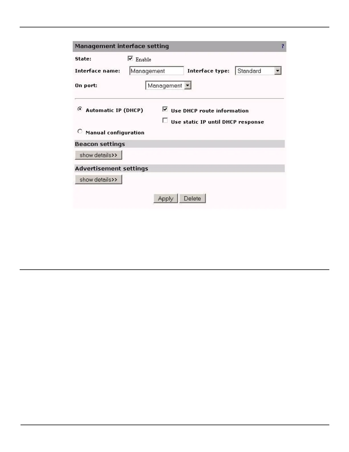 • Standard: Standard IP interface associated with a single port.