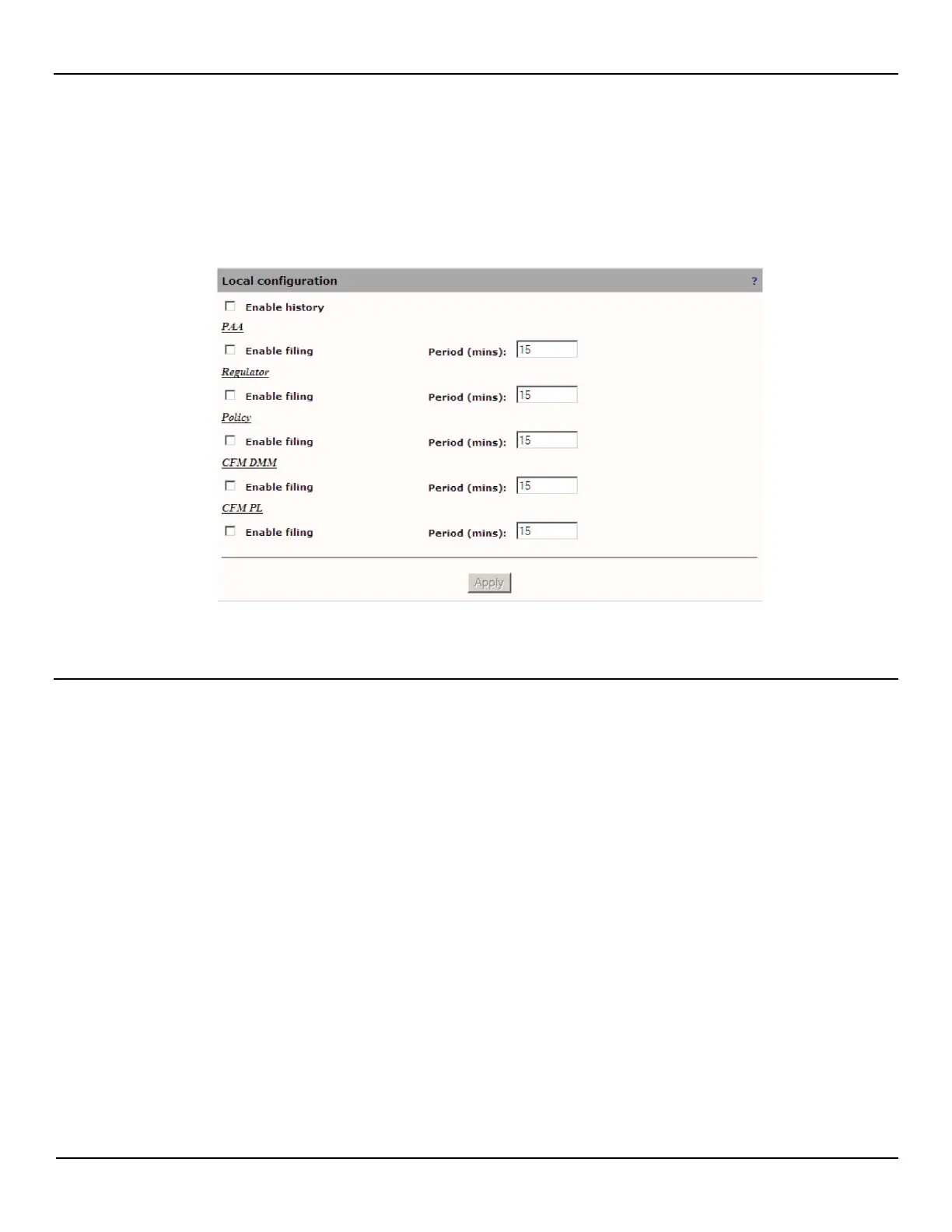 2. Define the history parameters as required and then click Apply.