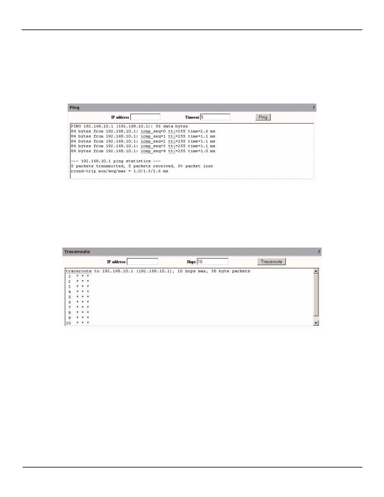 This section allows the use of the ping and traceroute commands.