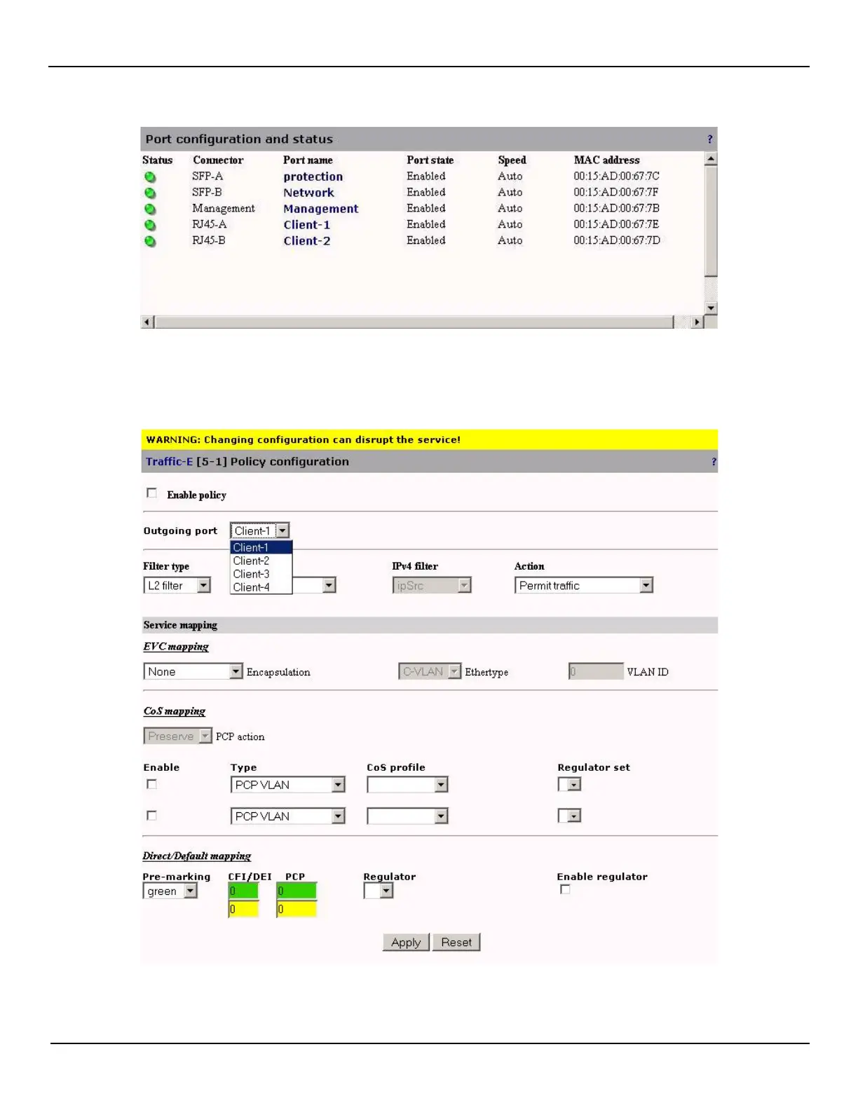 forwarded out the proper Client port. The following Policies page shows the new field added for the Network Traffic, when