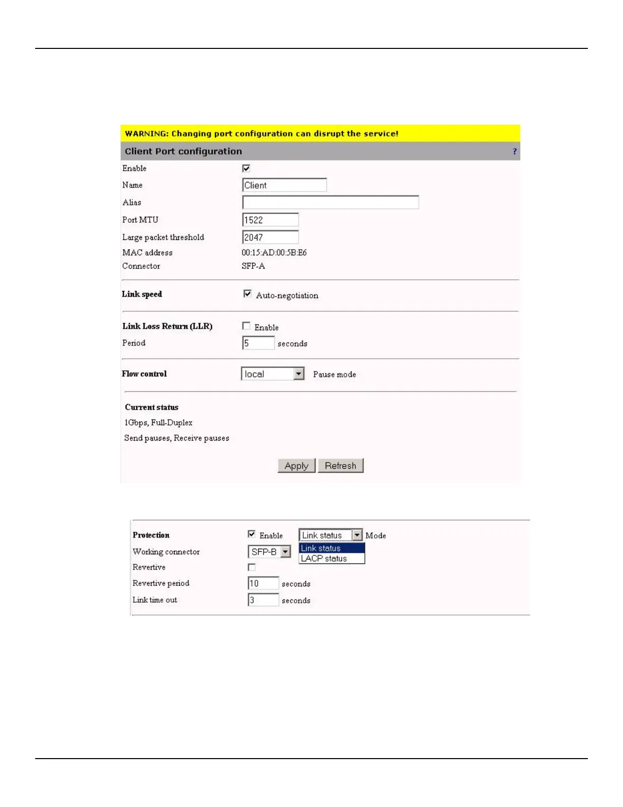 If you are configuring an SFP fiber port it will be similar to the following page: