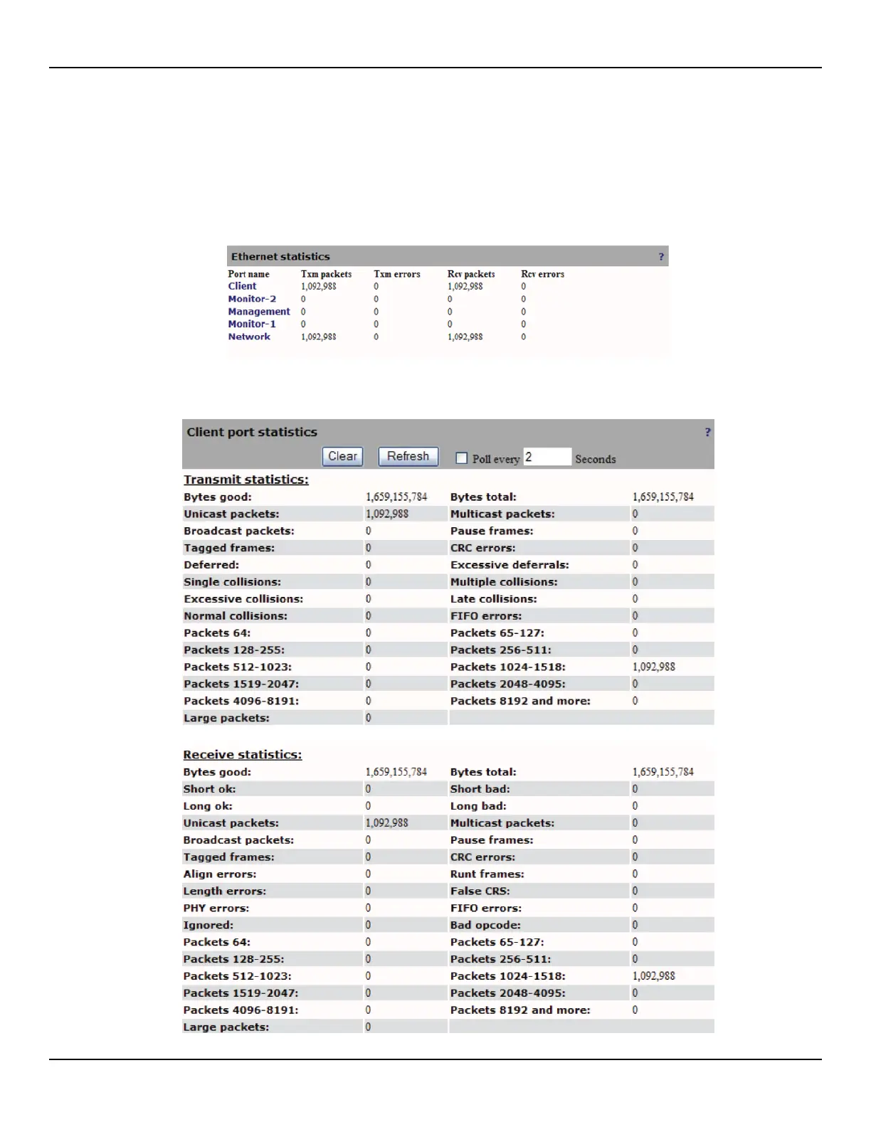 2. Click the name of a port to view detailed statistics. For example, if you click the Client port name on an EtherNID