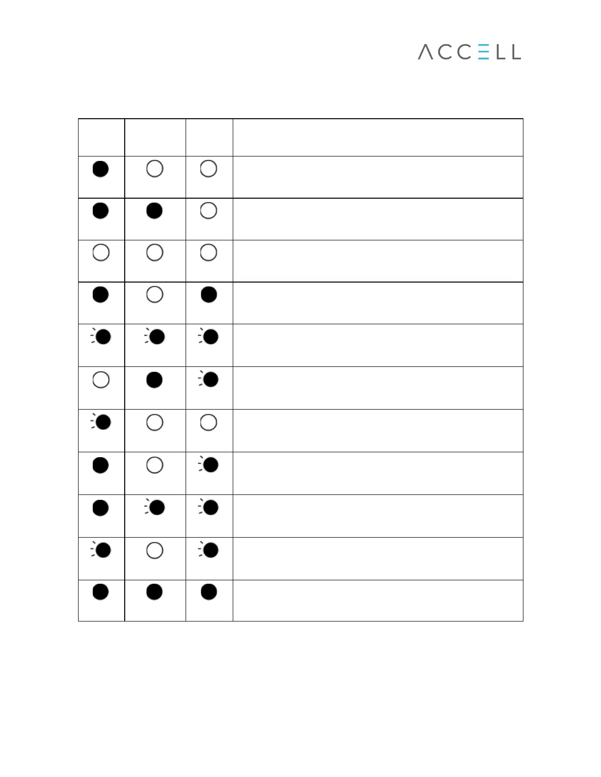The following table shows the status of Accell AxFAST Portable EV Charger indicator lights. It