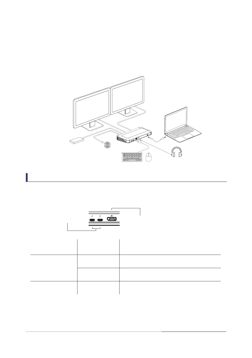 using any two ports of the available DisplayPort or two Thunderbolt™ 4 ports.