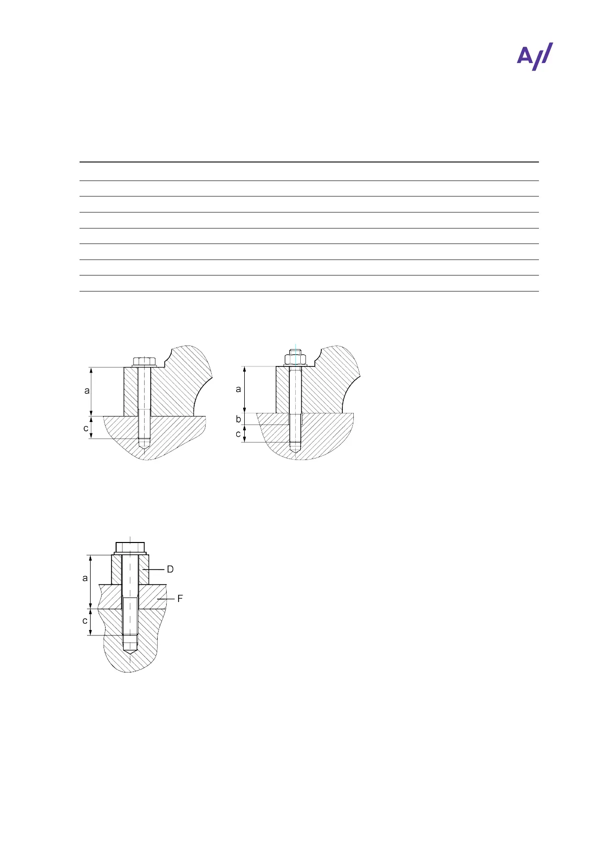 Dimension c Thread length, ≥ 1.5 x nominal thread diameter