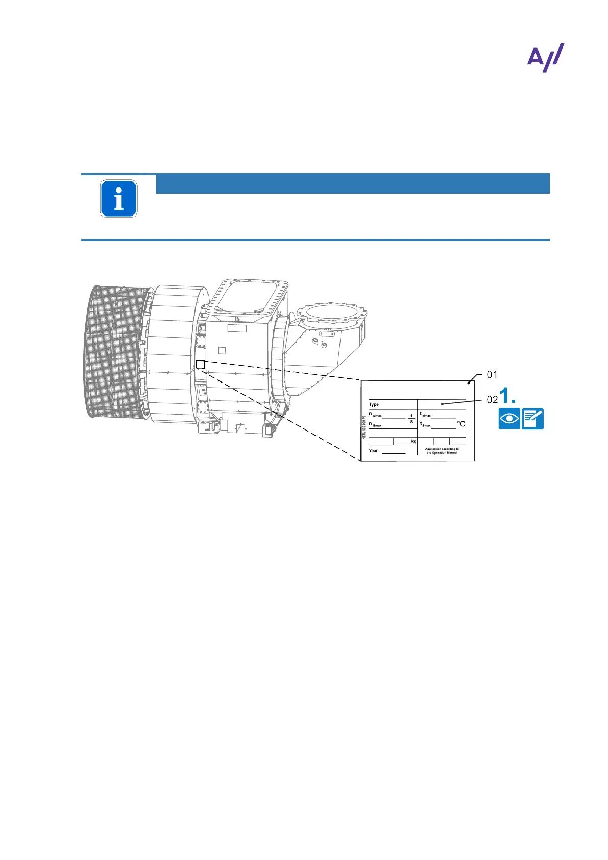 One rating plate (01) each is attached on the left and the right side of the turbocharger bearing cas-