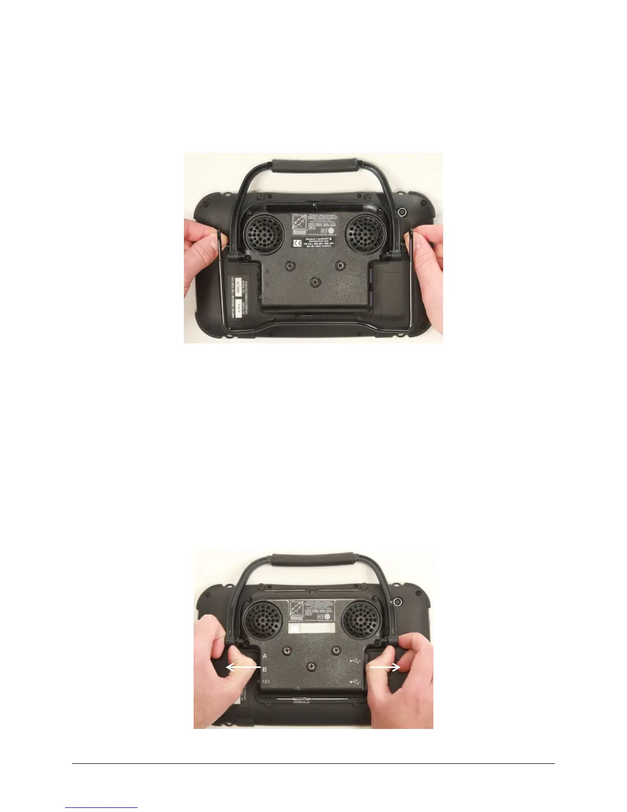 Place the device face down. Pull both legs of the handle stand out from the case and rotate the