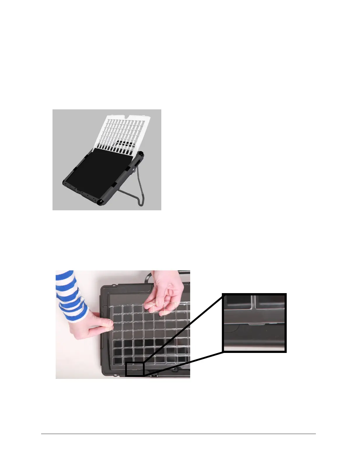 3. Leaving the pins inserted in the top of the device frame, simply lift the bottom of the keyguard to
