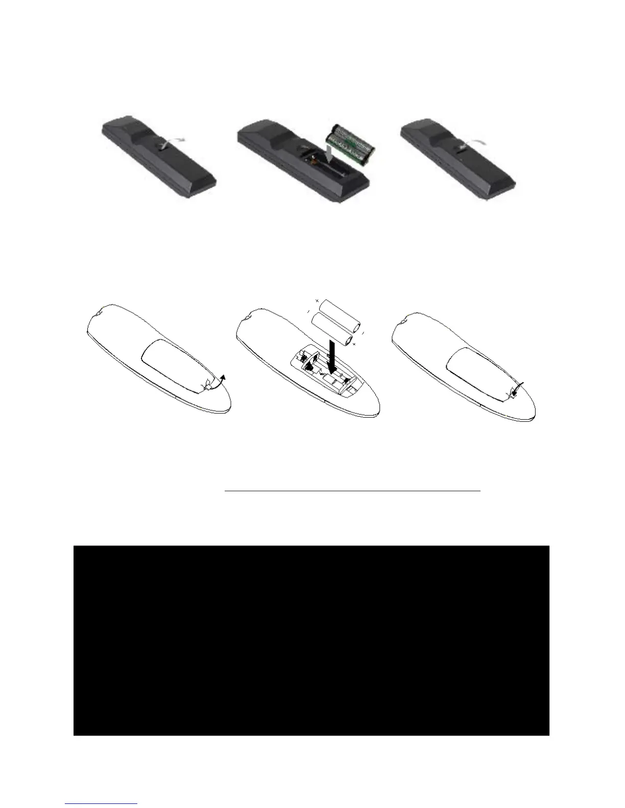 Dedicated RCU - Remove the battery cover from the remote control and put (2) AAA size