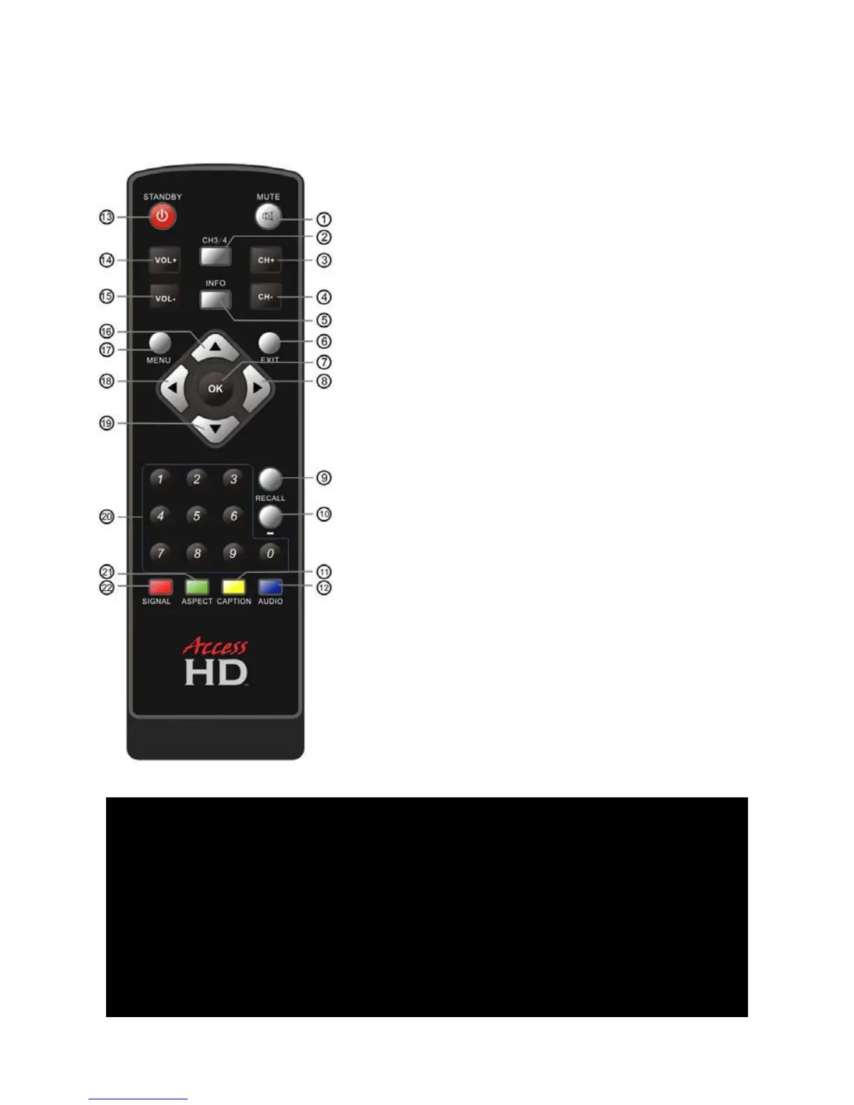 13. STANDBY: Press to switch the converter box on