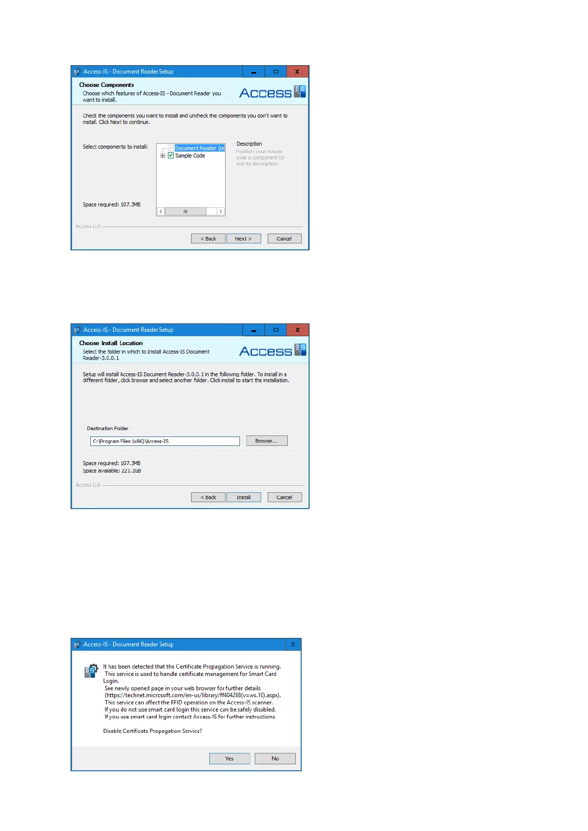 Certificate Propagation service. This service may affect the RFID operation of Access-IS