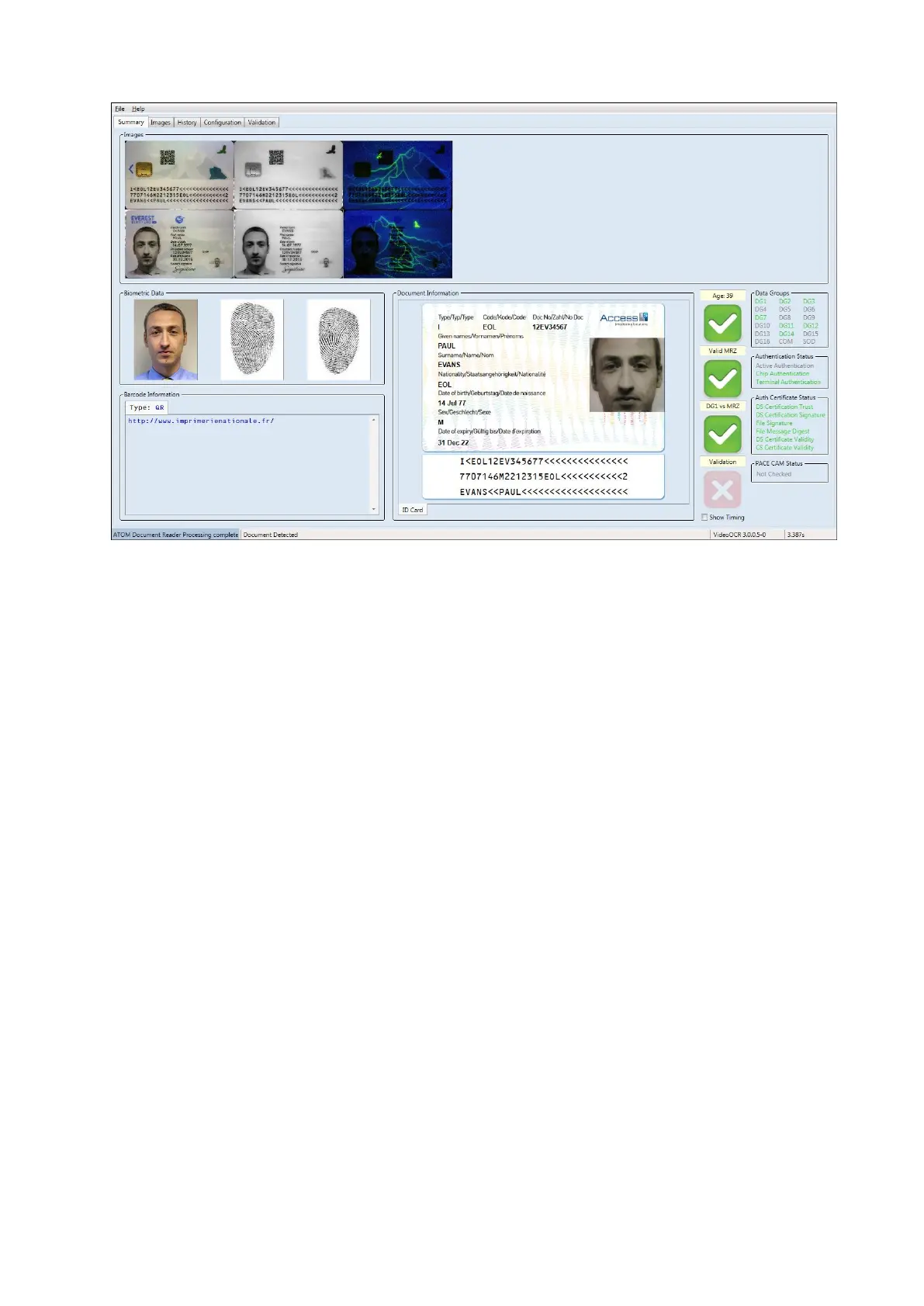 Displays a green tick if the MRZ is valid.