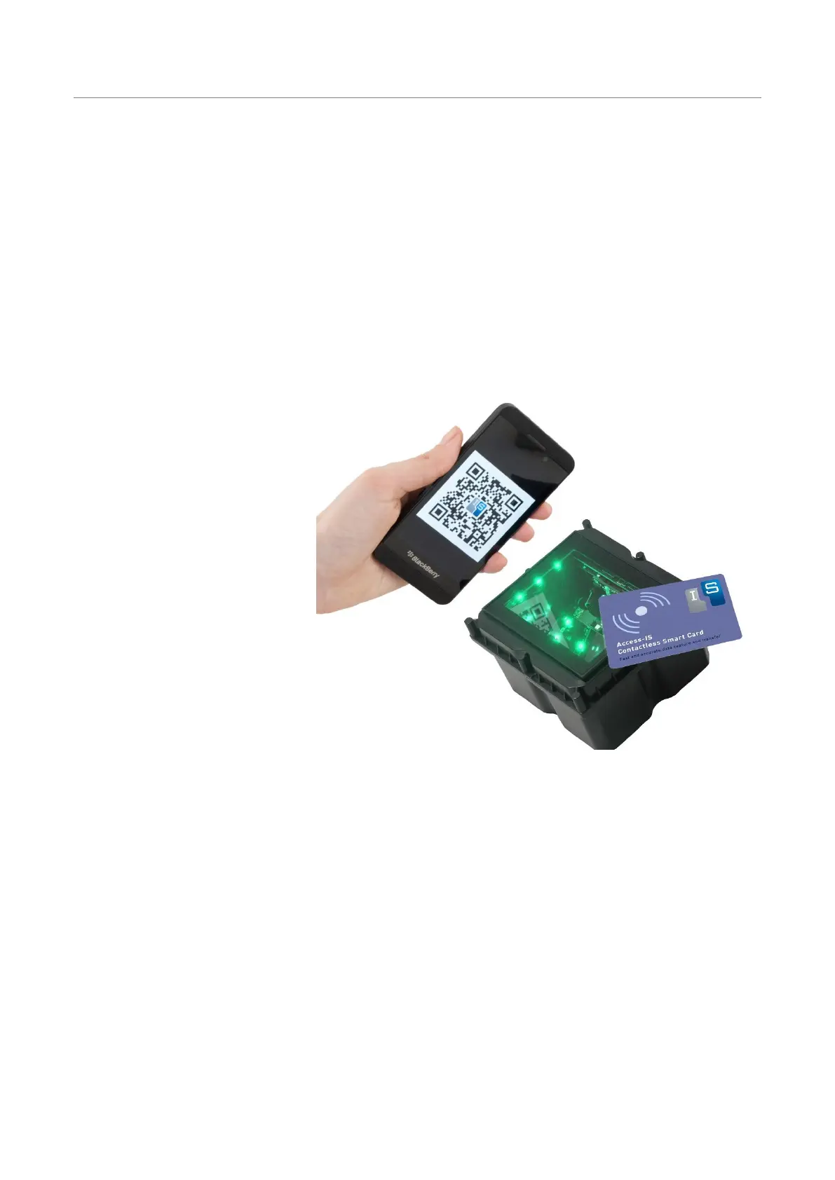 • Reads barcodes and NFC cards, labels and devices from a single point of presentation.