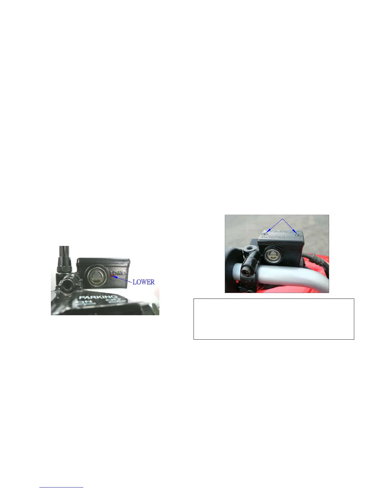 rear brake fluid levels in the reservoirs. Fluid level should be