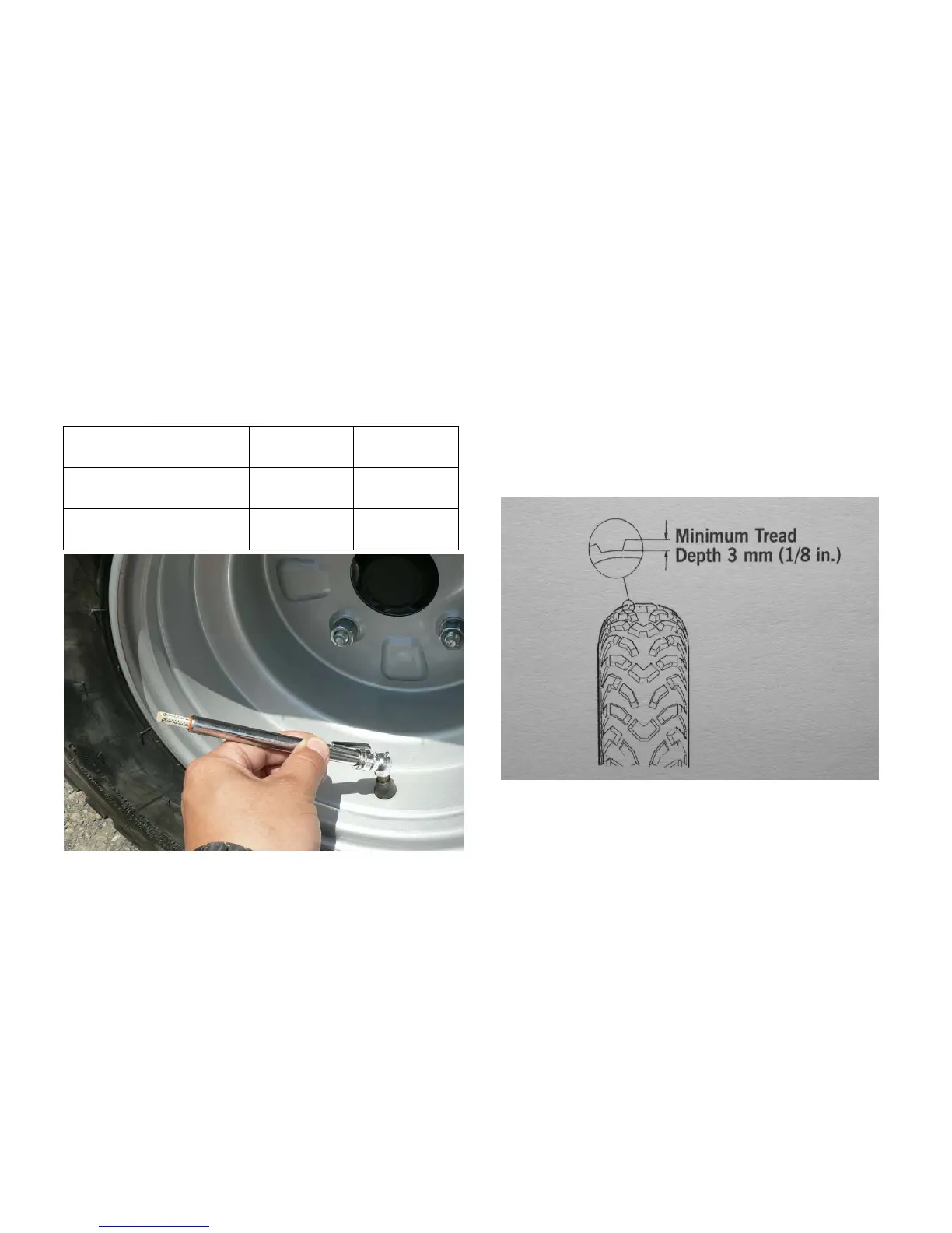 * If tire groove depth is less than 3mm, immediately change the