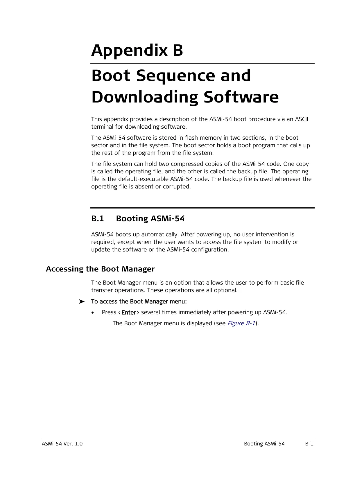 This appendix provides a description of the ASMi-54 boot procedure via an ASCII