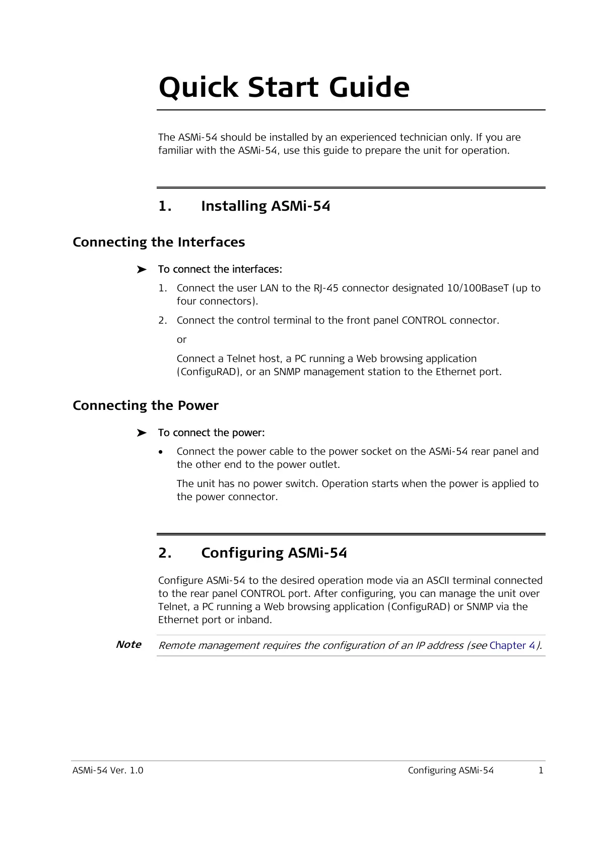 ASMi-54 Ver. 1.0 Configuring ASMi-54 1