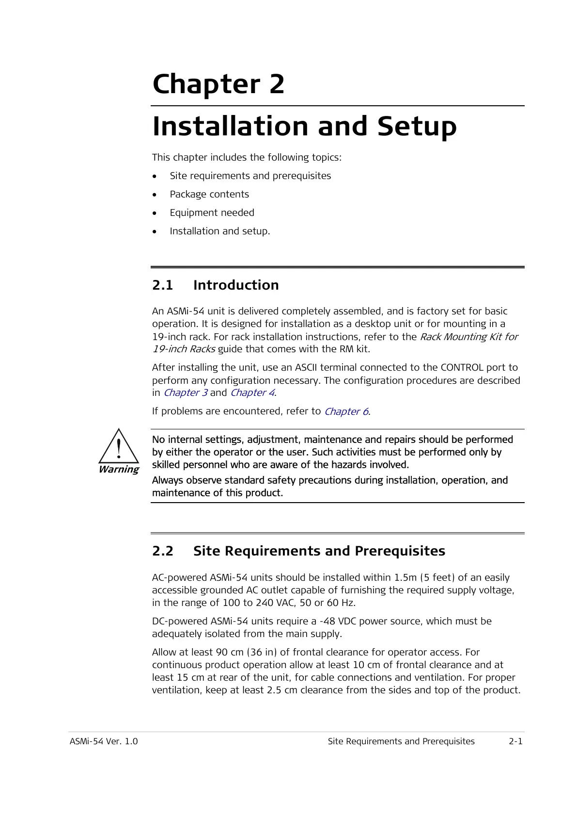 ASMi-54 Ver. 1.0 Site Requirements and Prerequisites 2-1