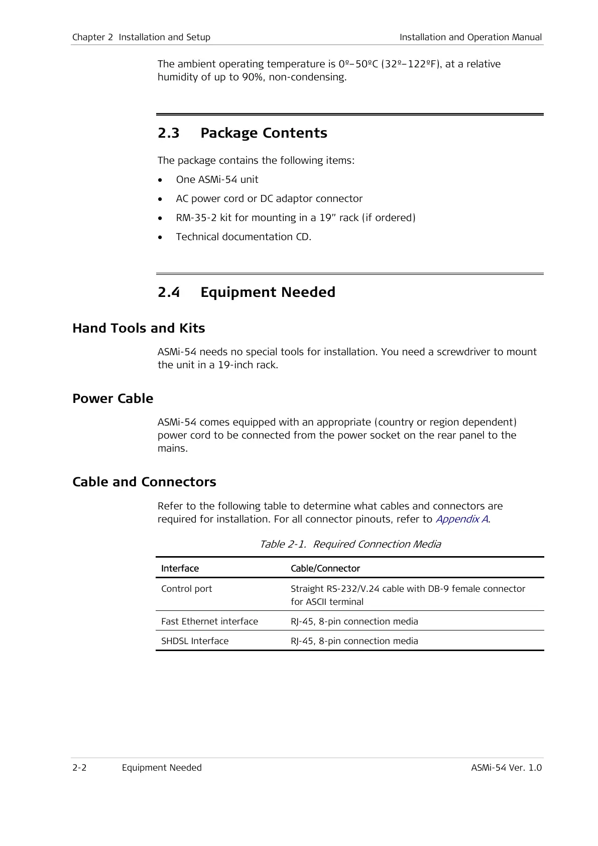2-2 Equipment Needed ASMi-54 Ver. 1.0