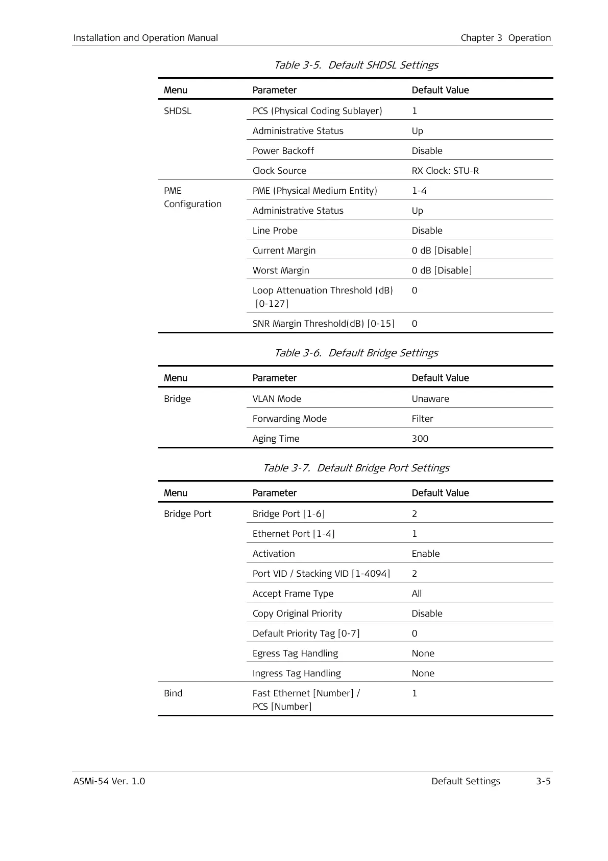 ASMi-54 Ver. 1.0 Default Settings 3-5