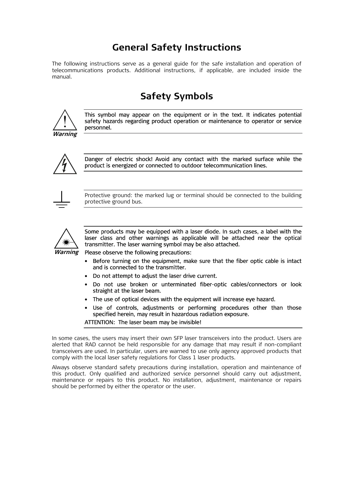 In some cases, the users may insert their own SFP laser transceivers into the product. Users are