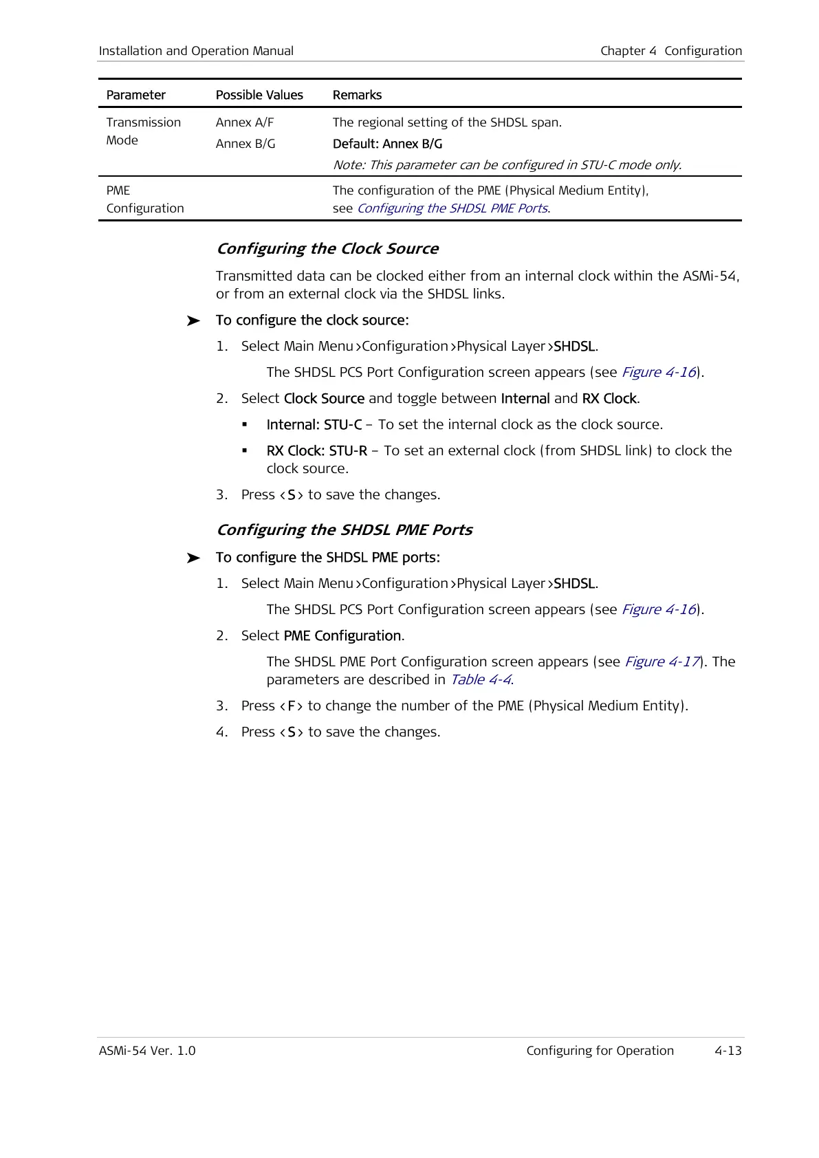 1. Select Main Menu>Configuration>Physical Layer>SHDSL.