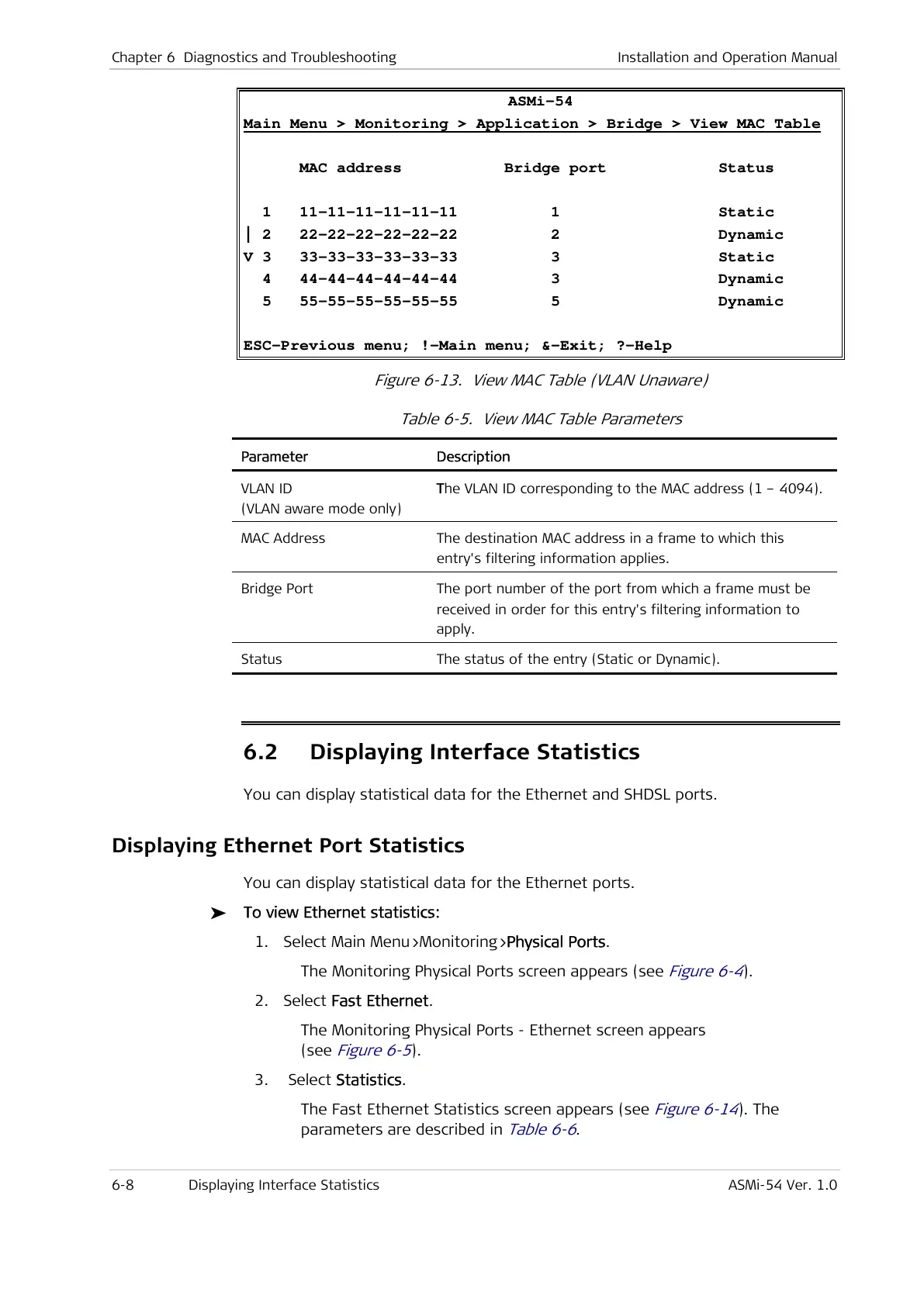 6-8 Displaying Interface Statistics ASMi-54 Ver. 1.0