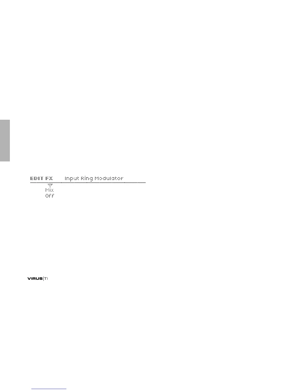 > Off, 1 to 63, Ringmod, 65 to 126, Input: “Off” means no
