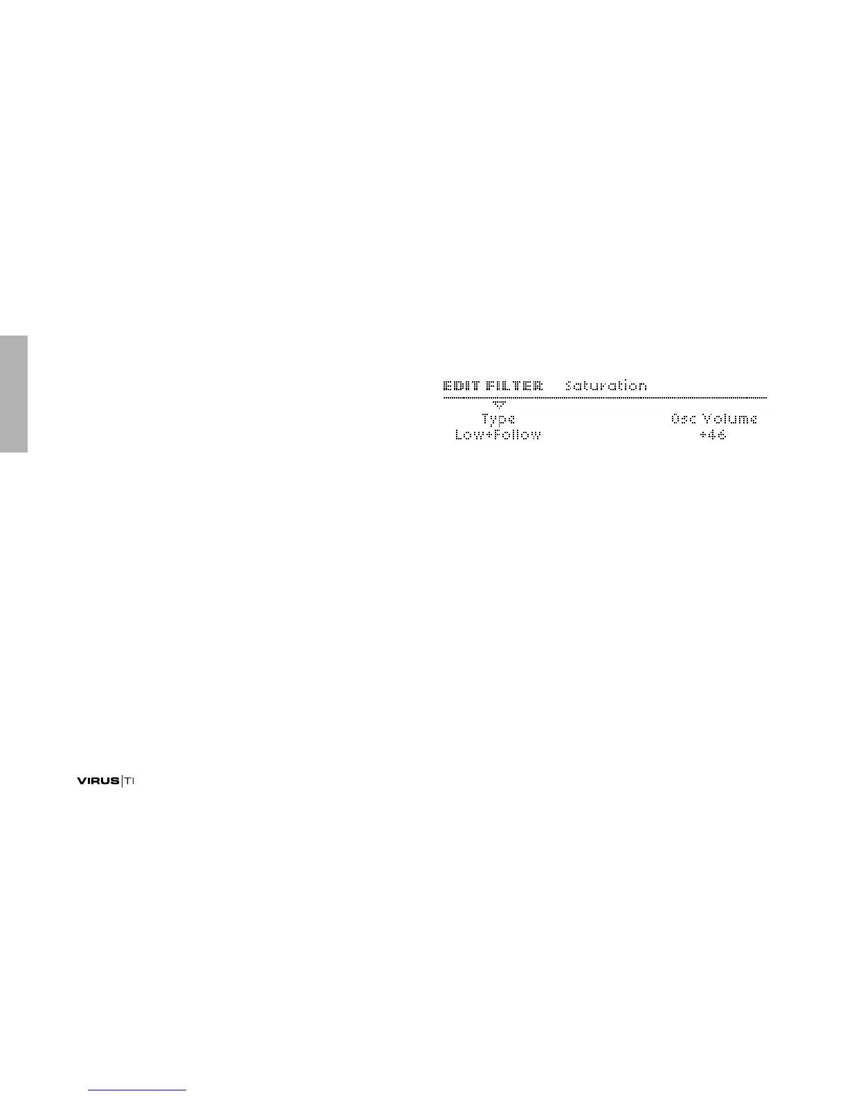 sented by each row of LEDs, the Virus has four “Analog” filter