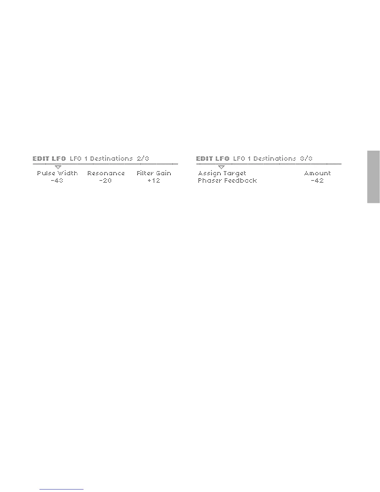 > -64 to +63: How much LFO1 modulates the Target parame-