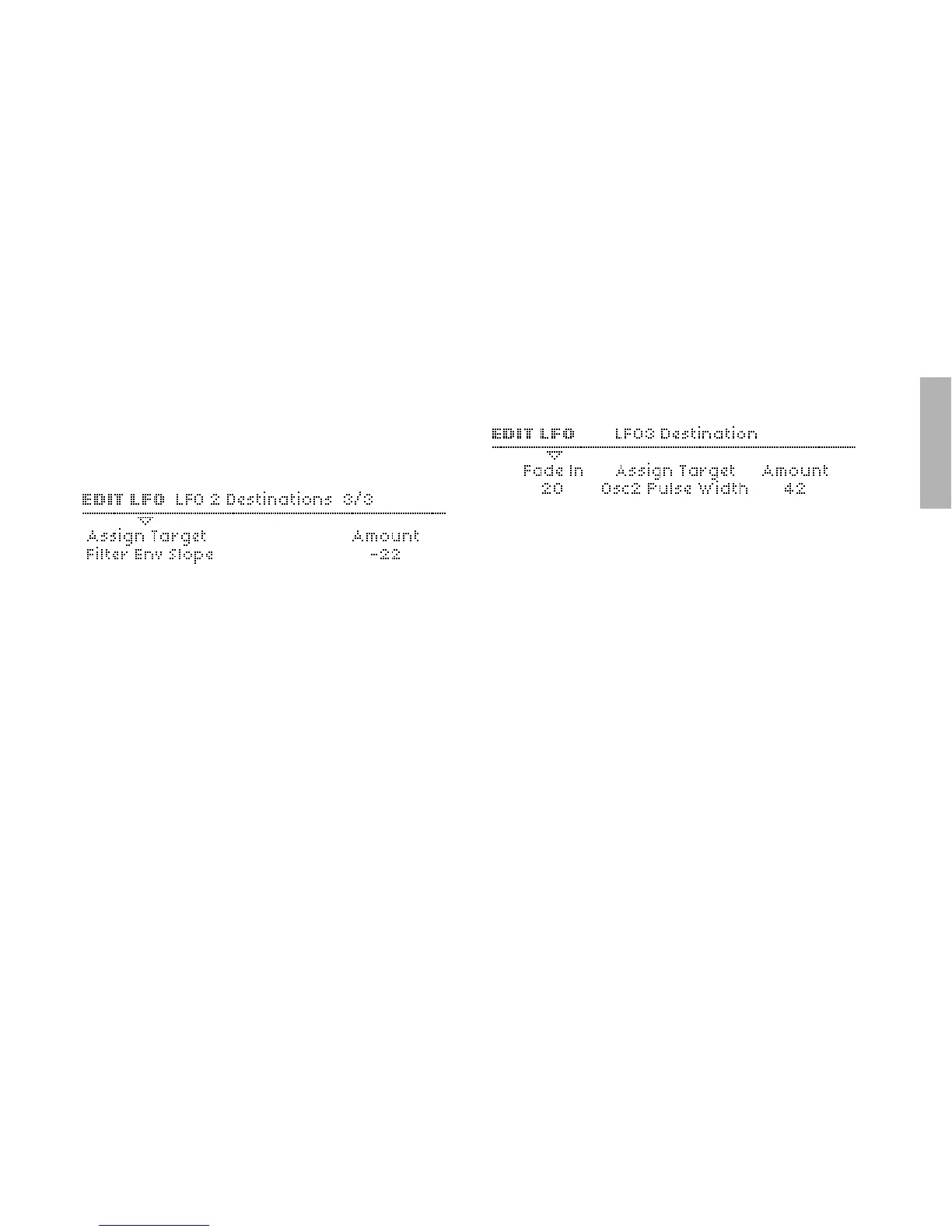 Unlike LFO1 and LFO2, LFO3 has only one modulation slot,
