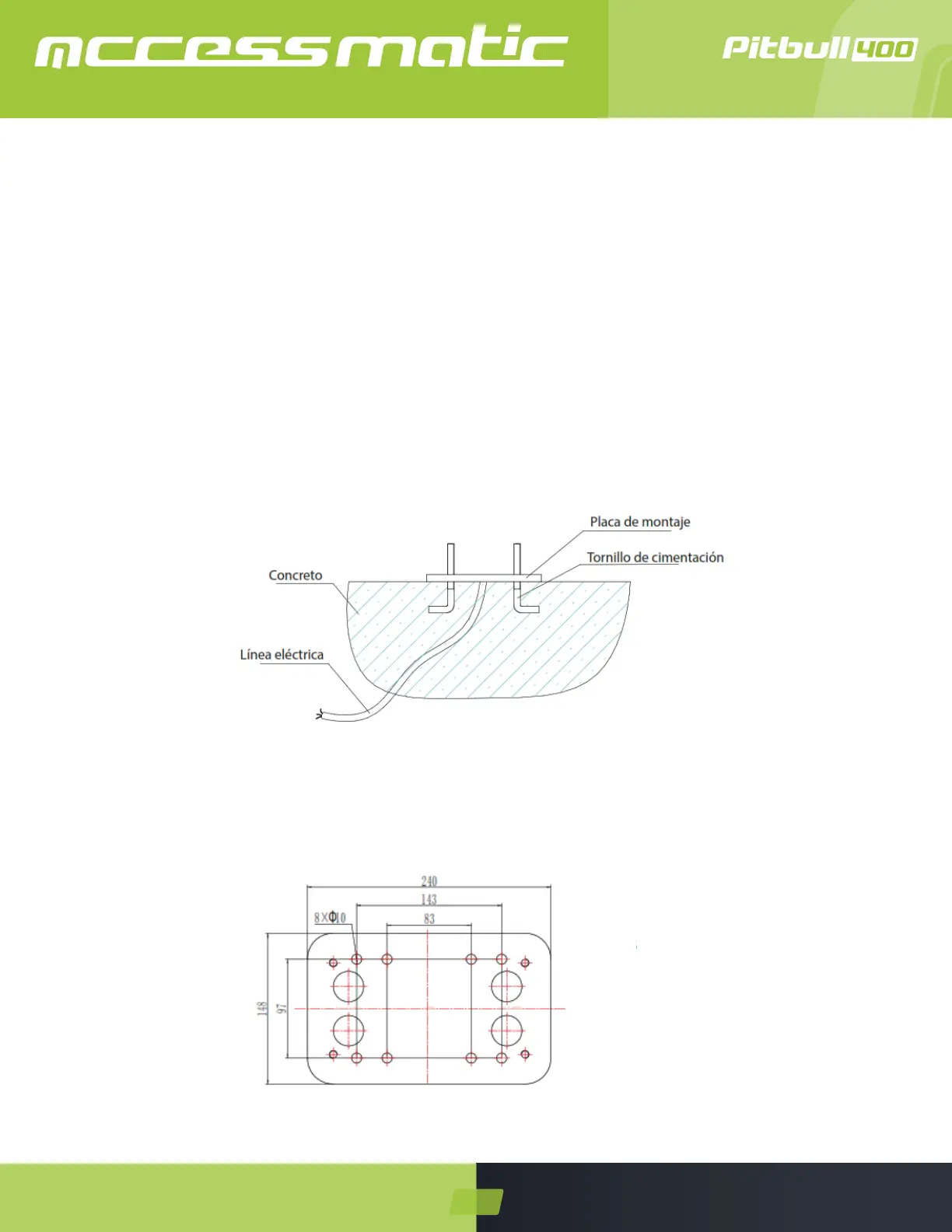 La unidad de base del motor de puerta requiere una plataforma de concreto con el n de mantener la estabilidad. La plata-